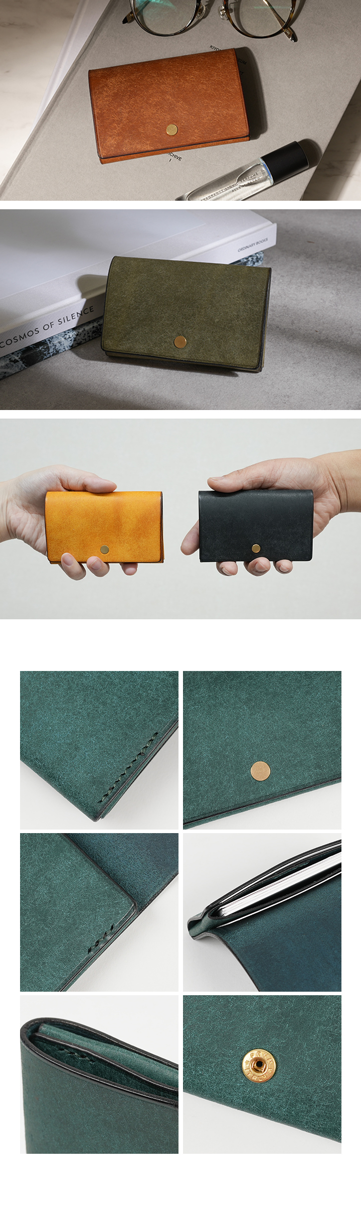 イタリーホックは、軽い力で開閉できて、確実に留まる信頼性の高い留め具です。名刺やカードの落下を防ぎ、ストレスなくスムーズに扱えます。耐久性にも優れており、長く安心して使える、頼れる設計です。