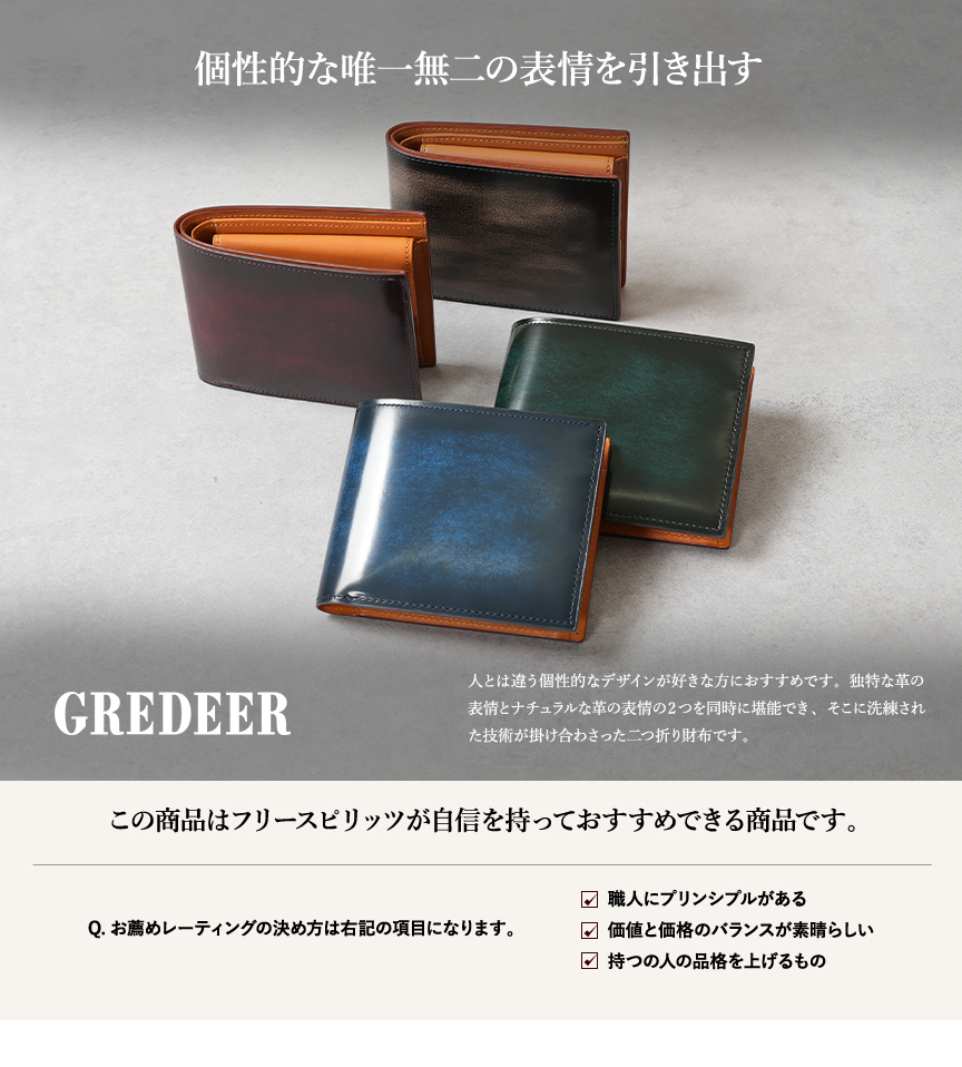 グレディア 小銭入れ付き 二つ折り財布 GREDEER