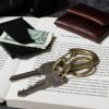 真鍮製カラビナに大小合わせて3つのキーリングを組み合わせたキーリング。