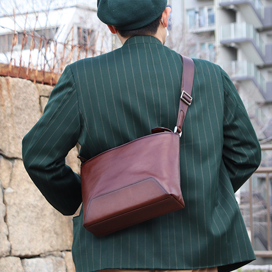¥63,800ジェンダーレスデザインの丸みあるバッグ。どんなコーディネートにも馴染み、革の質感を生かした美しいフォルムと構造バランスが魅力です。