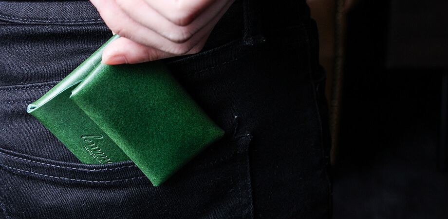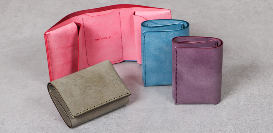 ¥16,500隠しポケット付きでカード5枚収納。女性の手にもすっきり収まるサイズ感。直線美と革の風合いが調和した、思わず持ちたくなるアイテム。