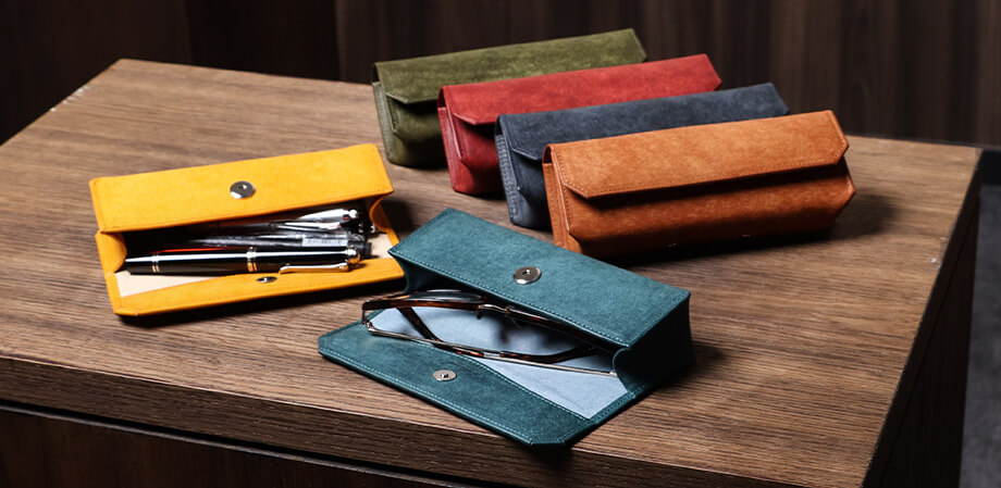 ¥6,930独自の折り革技法により形成された丸みのあるデザインのメガネケース。幅広いサイズのメガネに対応し、優れた機能性と美しいフォルムです。