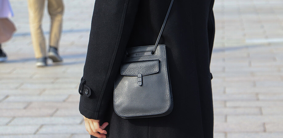 ¥27,500柔らかな質感と手に馴染む革が魅力。縦ラインが美しく、コンパクトだから服の邪魔をせず洗練された印象に。毎日使いたくなるデザインです。