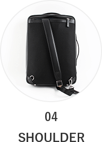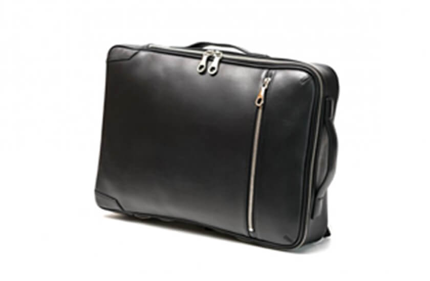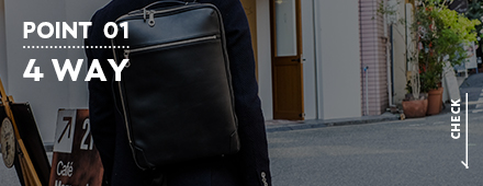 「スコッチガードレザー」を採用した、縦持ち、横持ち、リュックになり、金具を付け替えるとボディバッグのようにも使える4WAYタイプの鞄。引き締まった印象のあるブラックはビジネスシーンでも活躍します。