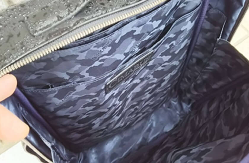 革を鞣す際にフッ素樹脂を塗布し完全防水を誇るスコッチガードのレザーは、雨や油からバッグの中の荷物を守ります。また。汗や雨からの撥水性機能だけでなく、耐久性や防汚性にも優れた革素材となっています。