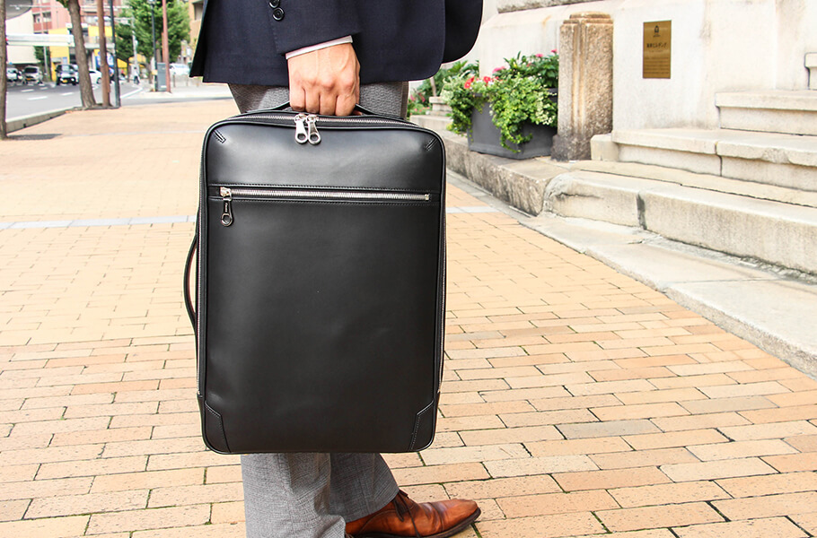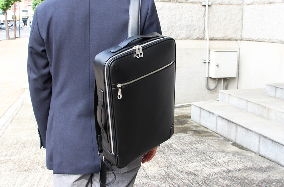 メインはバックパックとして使いながら、横持ち、縦持ちのビジネスバックとしても使えます。TPOに合わせて使い分けができるのも特徴の一つです。