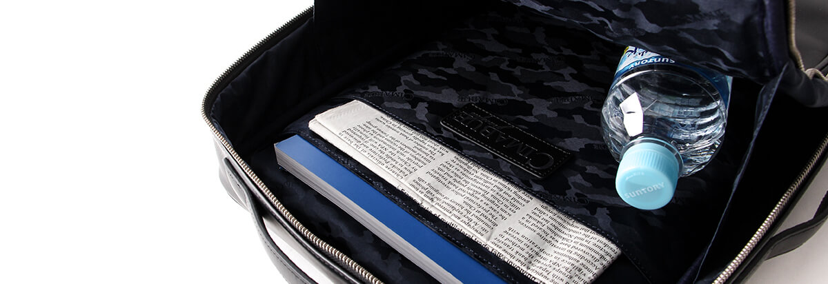 外側のファスナーポケットの箇所を1箇所にして、他のブランドにはない見た目のスタリッシュさに重点を置いたデザインです。