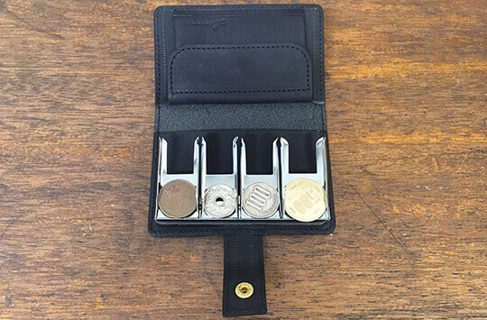 まずは、このセパレートタイプのコイン収納。開いたときのカッコよさとすべてのコインが一見できる機能性がすごい!