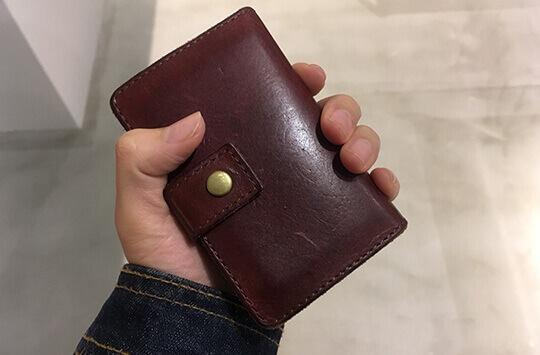 片手にすっぽりの名刺入れサイズ。この収納力でこのサイズは嬉しいですね。小銭入れをポケットに入れる方にもおすすめできます!