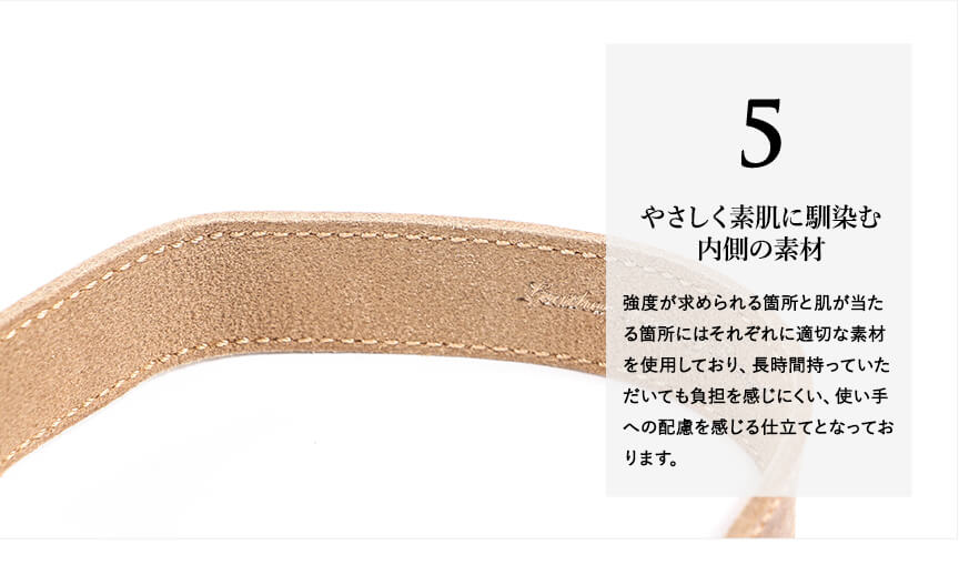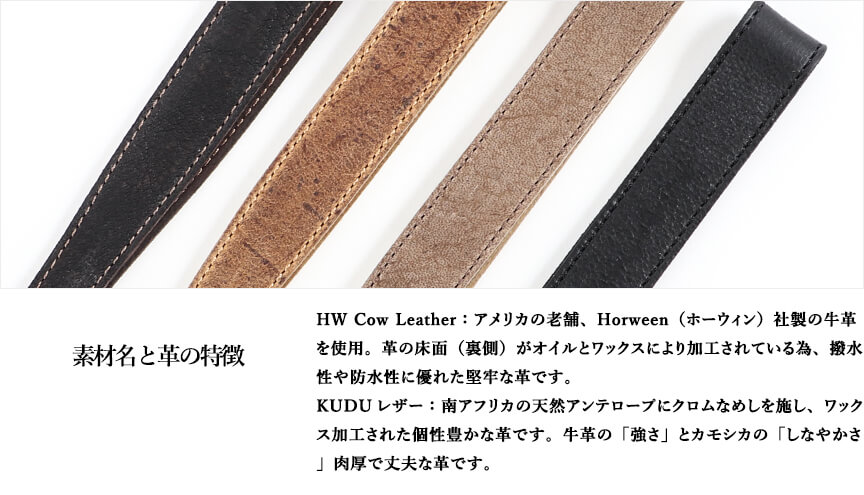 取付部分は幅10mmのレザーテープタイプ+ワックスコードのロールタイプが付属