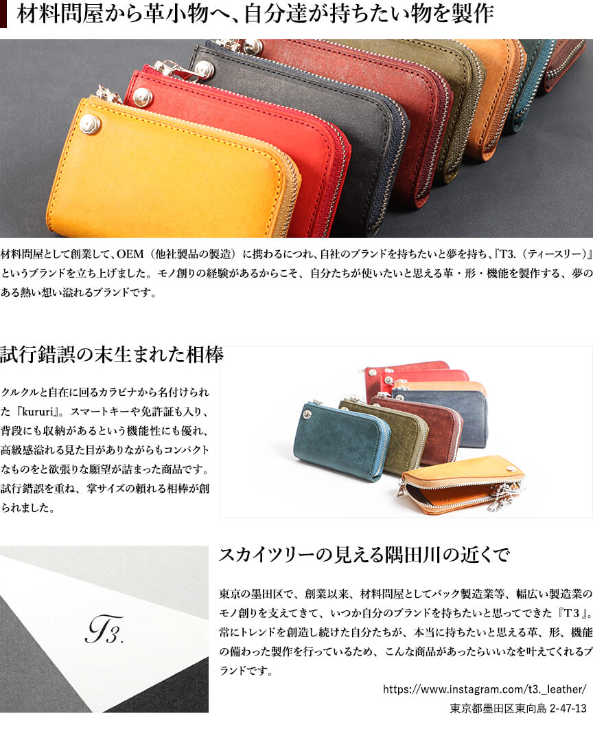 クルリ Kururi コンパクトキーケース ウォレット t3Leather