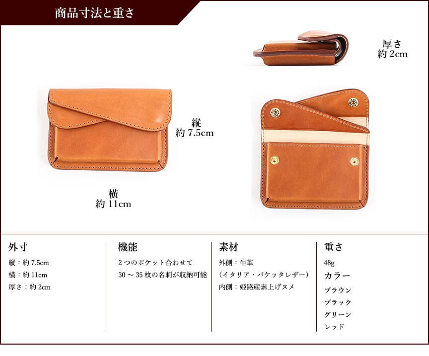 今回、名刺ケースをプレゼントで購入しました。 非常に材質がよく使っていくと色味が変わっていくのでプレゼントとしてはとても喜ばれました。また、特徴的な形をしており、なかな被らないと思います。非常に満足しました。ありがとうございます。