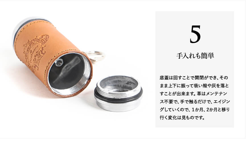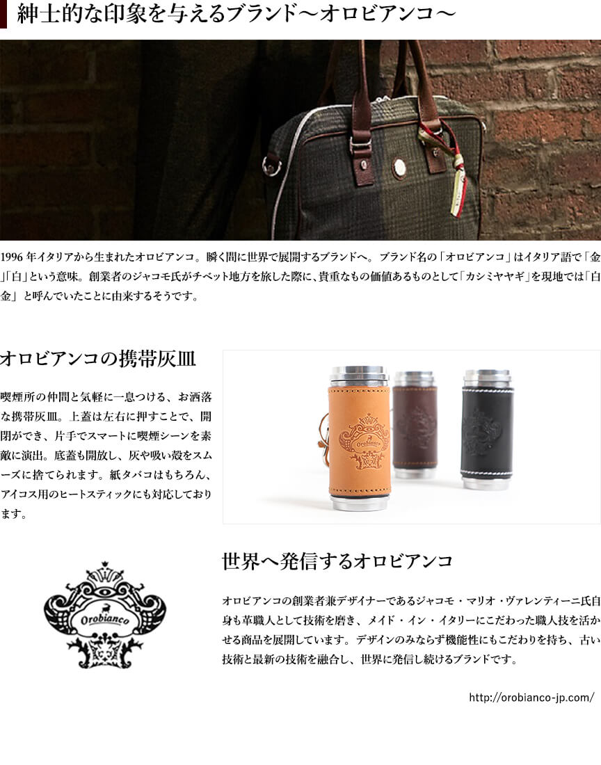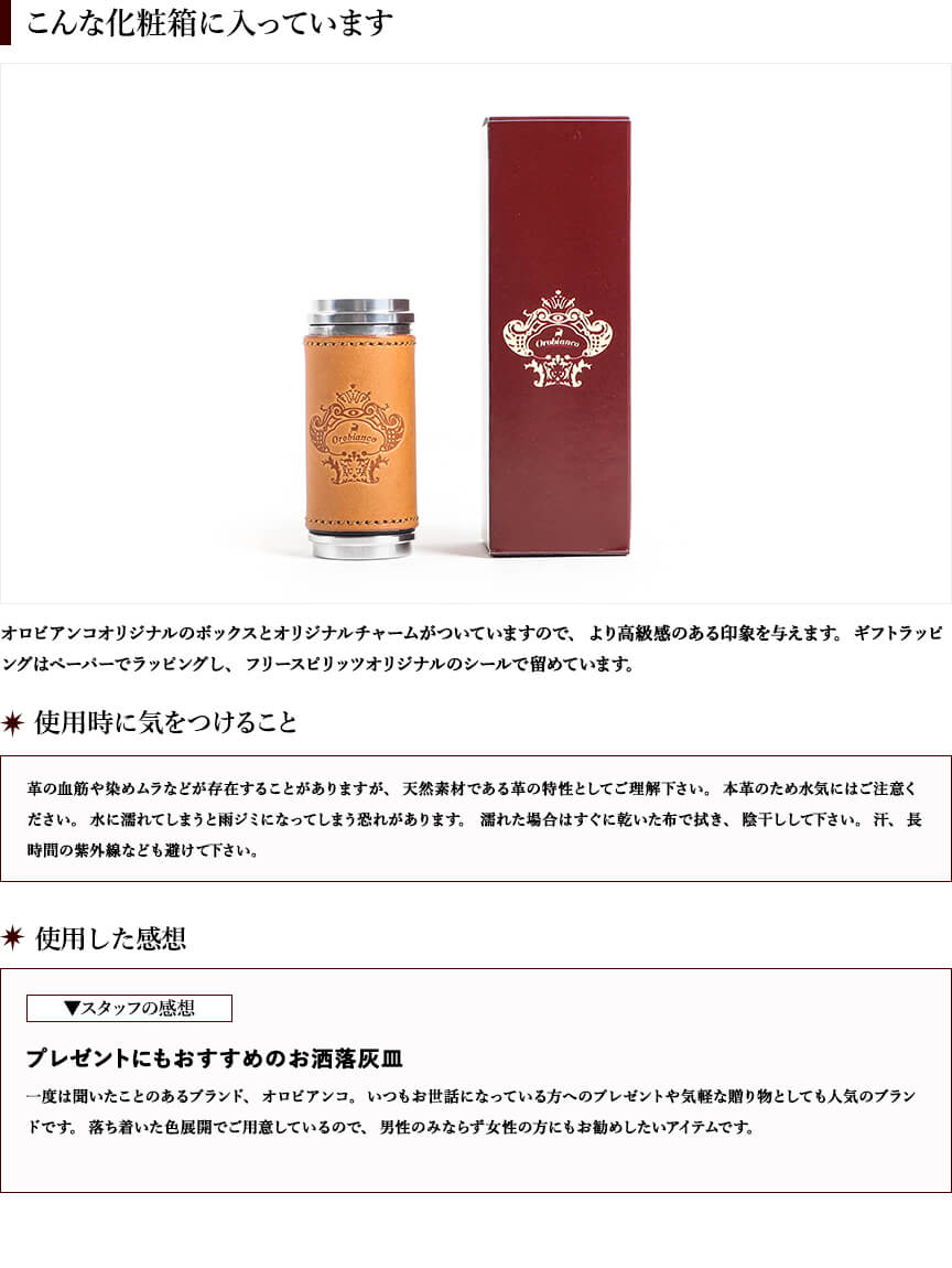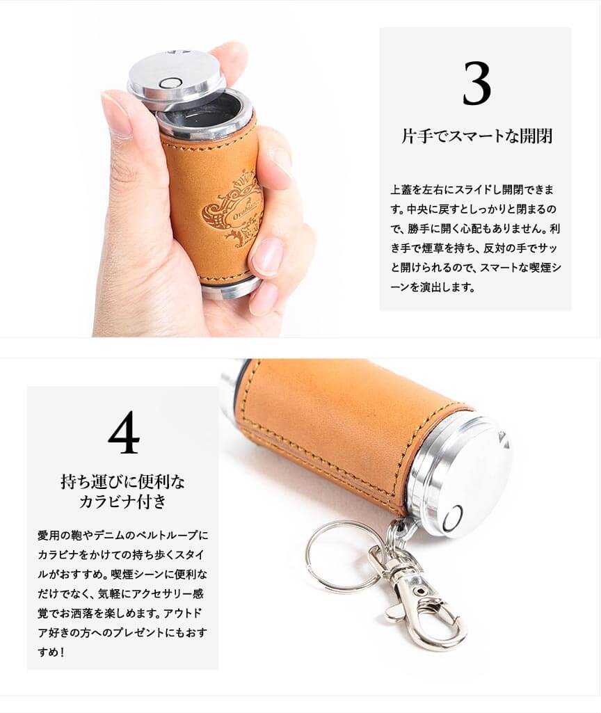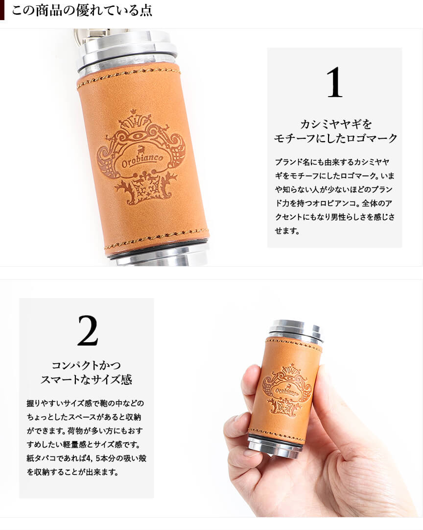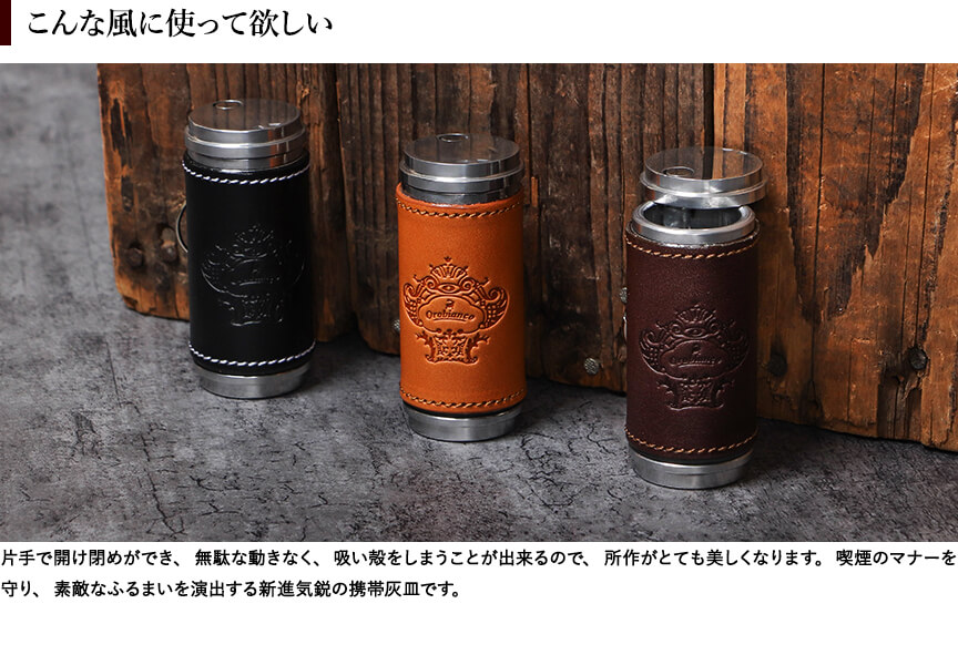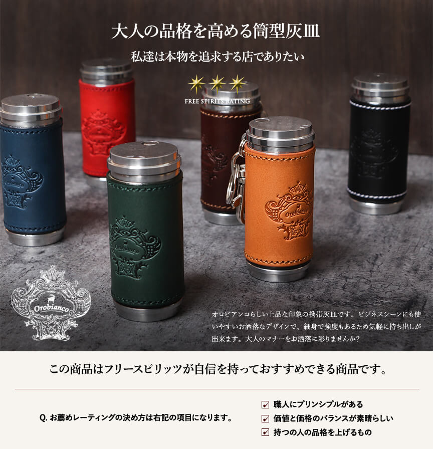 オロビアンコの革貼り筒型携帯灰皿 OROBIANCO