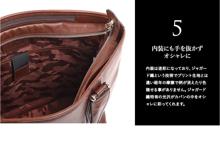 本体:姫路産シュリンクオイルレザー、内装:ジャガード織りポリエステル
