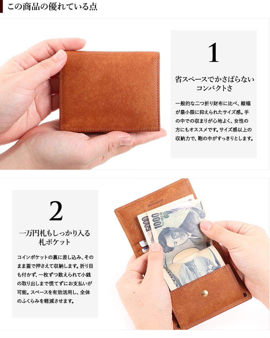 プレゼントとして買ってもらいました。 コンパクトな財布が欲しいけど、お札を折ってしまうのは嫌だったのでまさに自分にぴったりな商品でした。