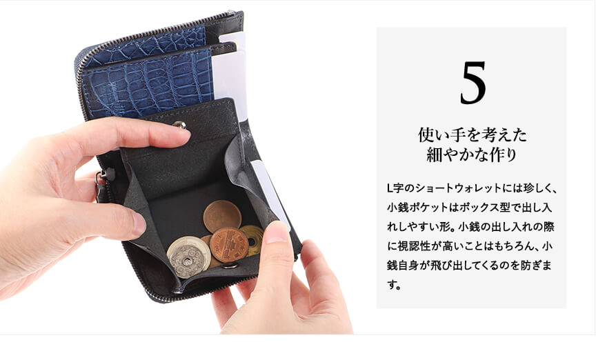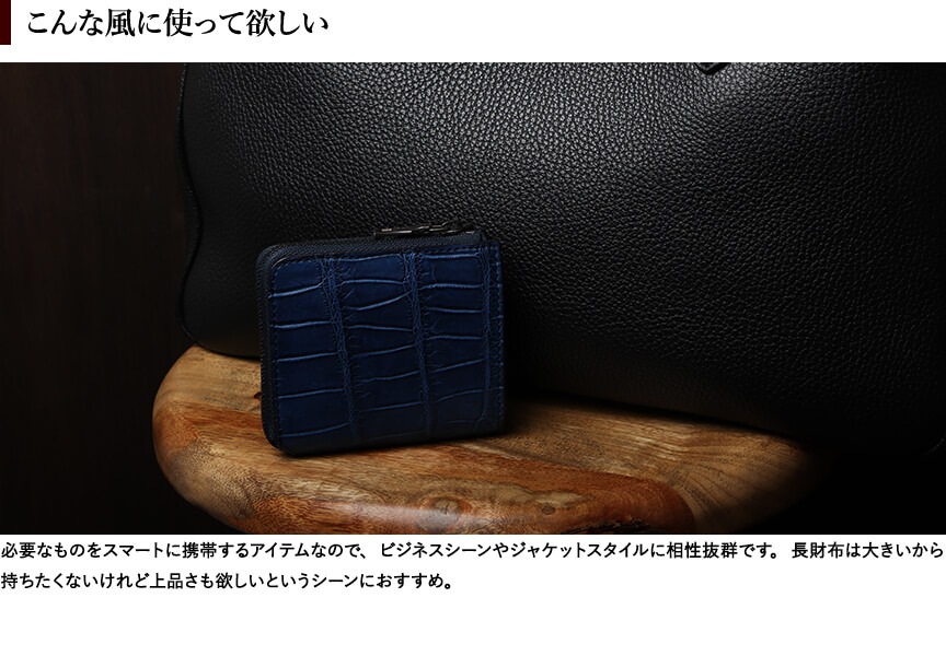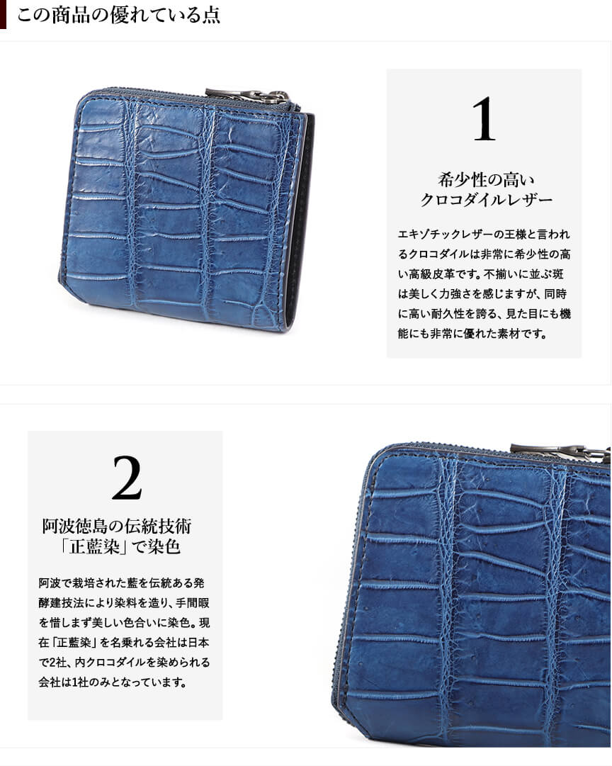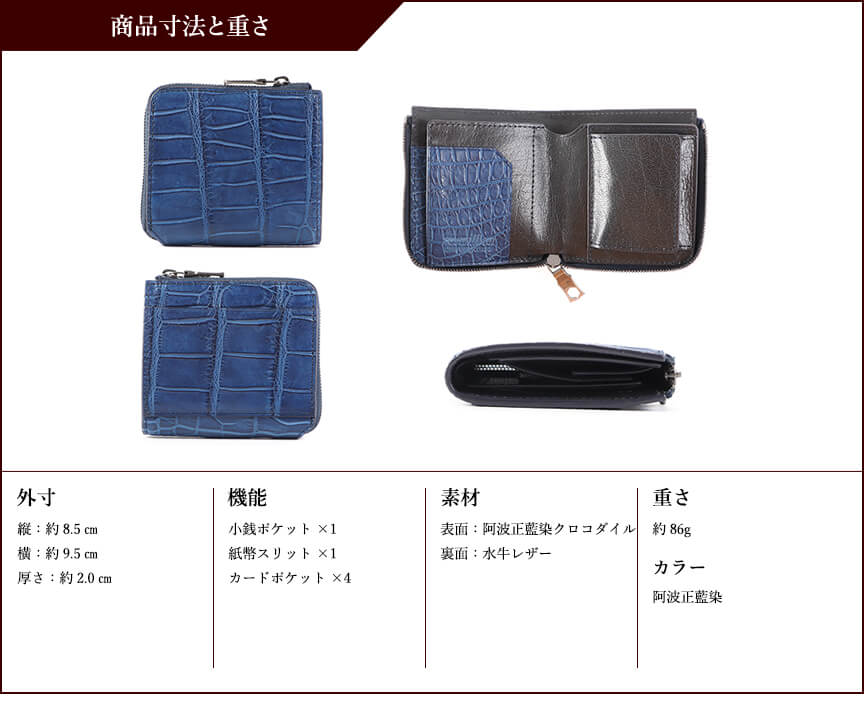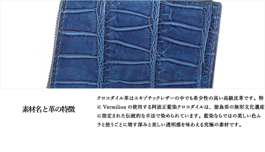 ヴァーミリオン 阿波正藍染クロコ L字ショート小銭入れ付二つ折り財布 vermilion