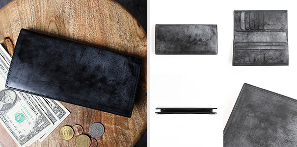 絵画技法をもとに生まれたYUHAKU独自の染色で輝きを放つ財布。男性らしいデザインが幅広い年代から支持を得ています。