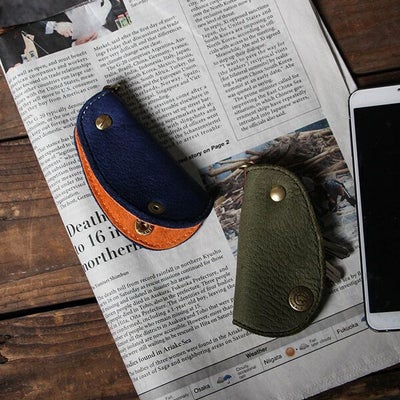 小さいキーケースを探してたら程よいサイズがあり購入しました。 カーキの色と中のオレンジのコントラストも良く高級感のある革の感じも良い! 大きさも3本入れてますが丁度良くて、使うカギが少ない人にオススメです。 今から革の経年変化が楽しみです。