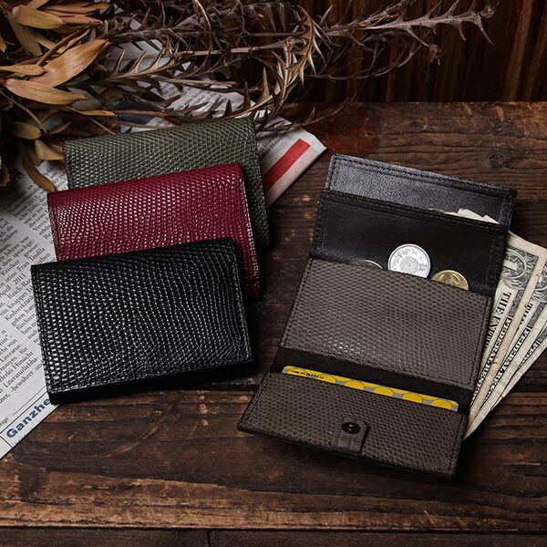 リザードのブラックを購入しました。上品な質感で大満足です。ゆっくり経年変化を楽しみたいと思います。本来小銭入れの部分によく使用するクレジットカードを入れています。