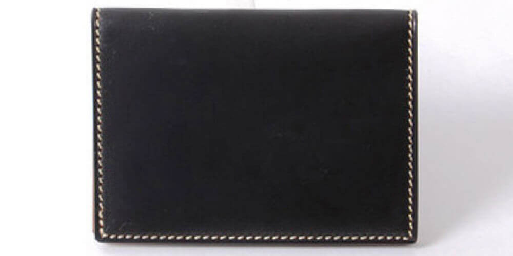 薄型の二つ折りの定期入れです。内側に名入れができるので、コードバンの革が使われているのでゆっくりと光沢が出てくる素材です。