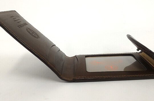 見た目から感じる重厚感。ザ、紳士革小物という印象があります。しっかりと安心感のある縫製や細部の処理に職人さんの経験値が物語られていますね。