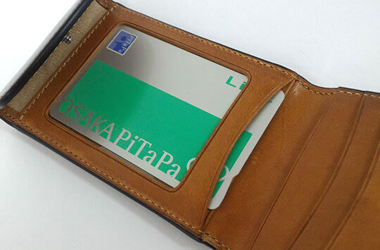 縦に開くと内側には5つのカードポケットがあり、複数の定期券の他にも社員証なども収納可能となっております。外側にも1つカードポケットが装備してあるのでよく出し入れする定期はその部分に収納可能です。