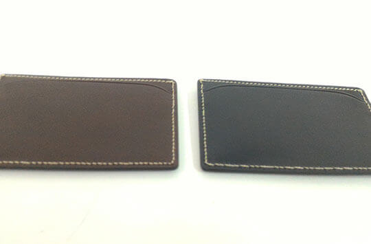 薄造りのスマートな定期入れで厚みはなんと、0.5cm程度です。金具なども使用されておらす、革と糸のみを使用したシンプルさ。