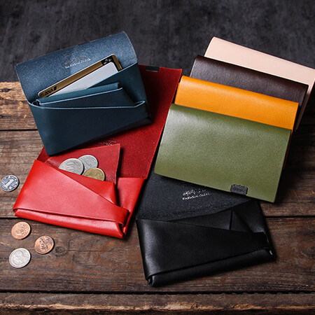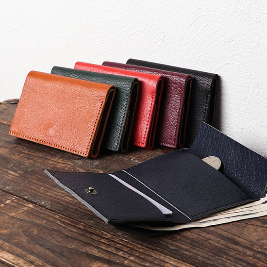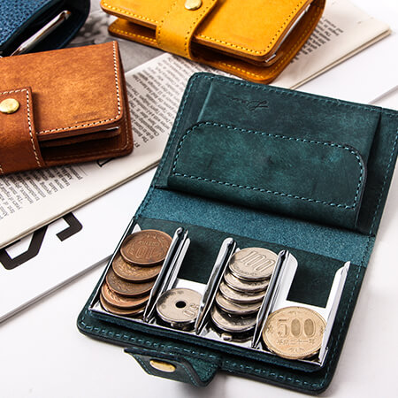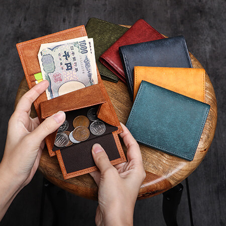 機能的なだけでなく、色んな革の素材とカラーが楽しめるコンパクト財布。色違いで購入されるカップルが多い男女問わず人気の高いミッレフォリエ。