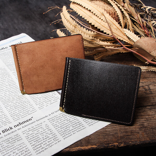 武骨ながら洗礼されたデザイン。男らしい表面を持ちながらどこか上品でシンプルな表情も持ちあわえるおしゃれなマネークリップ。革の床面にオイル、染料を塗り込みプレスして仕上げたリバーシブルの革で双方のエイジングが楽しめます。