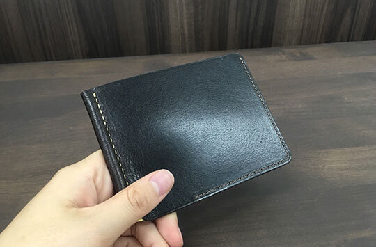 縦が9cm、横が12.5cmとすこしだけ横幅が広めのマネークリップですが、お札がはみ出ること無くスマートに収納が出来るんです。男性にはぴったりのサイズ感。